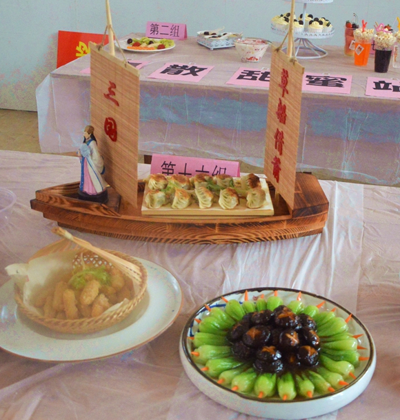 女同胞們有的揉面有的搓團(tuán)兒,有的掂勺有的擺盤,有的擺弄雕花,還有穿起了糖葫蘆串兒,為了團(tuán)隊(duì)的榮譽(yù),個(gè)個(gè)擼起?子加油干!