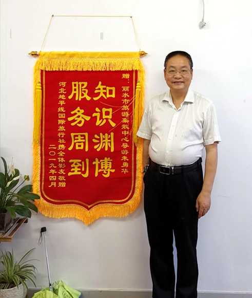 4月24日,一份來自河北的快遞悄悄地抵達了麗水市旅游集散中心,打開一看竟是一面送給集散中心導(dǎo)游朱勇華的錦旗,上面赫然寫著“知識淵博 服務(wù)周到”。