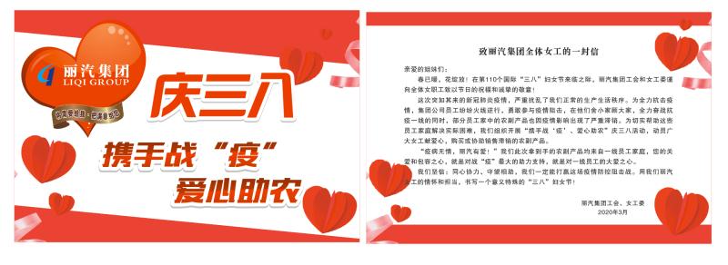 “疫病無情,麗汽有愛!”女工們紛紛表示,今年的三八雖然不能像往年一樣能相聚在一起慶祝節(jié)日,但是彼此的心在一起,大家心系戰(zhàn)疫一線,攜手助農(nóng),也讓這個節(jié)日過得比往年更有意義!