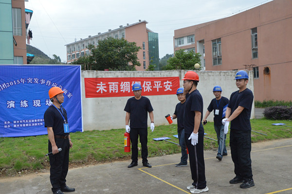 為使演練更加貼近實戰(zhàn),本次演練的時間、地點都屬保密內容,事前均未告知各個參演單位,只在演練當日以短信的形式通知各參演單位聯(lián)系人。下午14:30,事故演練現場總指揮、麗汽集團常務副總經理何赤詮下達開始演練的指令,演練工作小組立即通過短信群發(fā)告知各參演單位第一時間趕赴事故現場。各單位聯(lián)系人收到事故短信后,按生產事故報告程序及時、全面的向相關部門報告(將事故情況以短信發(fā)送至指定手機號碼的形式模擬報告程序),然后攜帶必要的應急救援物資和個人防護用品趕赴現場,參加救援。8分鐘后,客運西站代表隊第一個趕到事故現場。18分鐘后,11個參演代表隊全部到達事故現場。