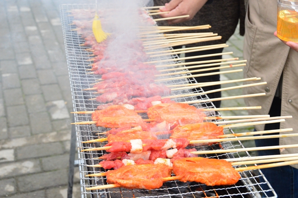 美食燒烤。餐桌上給大家放置了各式的燒烤食材。碳火生成后,羊肉串、雞翅、魷魚等上架,刷油、上醬、灑粉,女王們動作嫻熟又干練??炯苌稀爸ㄖā甭?,女王們的歡笑聲,伴隨著燒紅的碳火,把女王們的臉映襯得格外美麗。